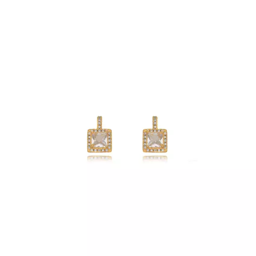 Semijoia - Brinco Quadrado Cravejado Confeccionado em Banho de Ouro Amarelo 18K.