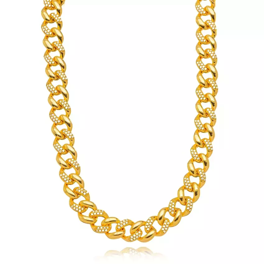 Semijoia - Choker Elos Micro Zircônia Confeccionado em Banho de Ouro Amarelo 18k.